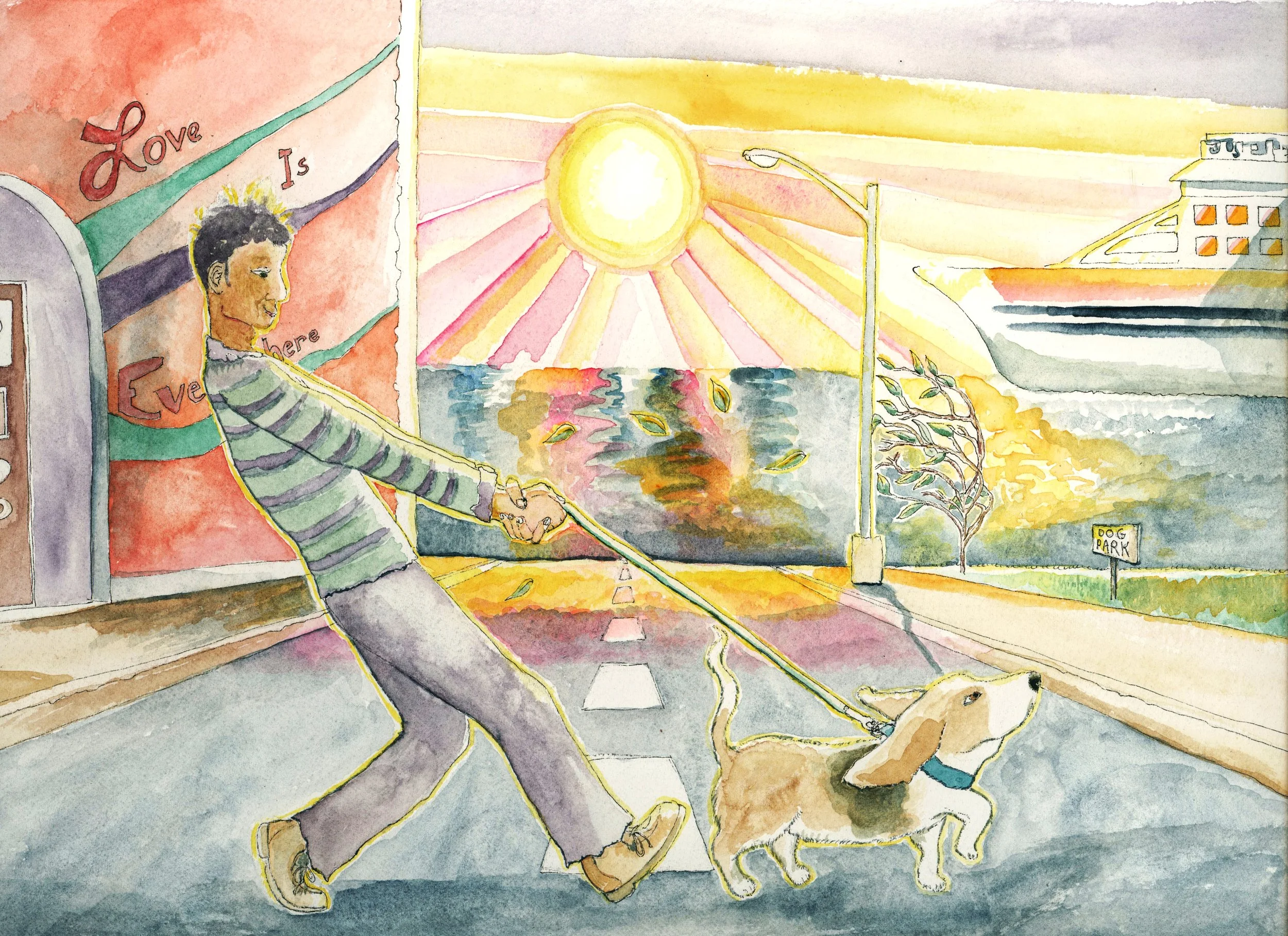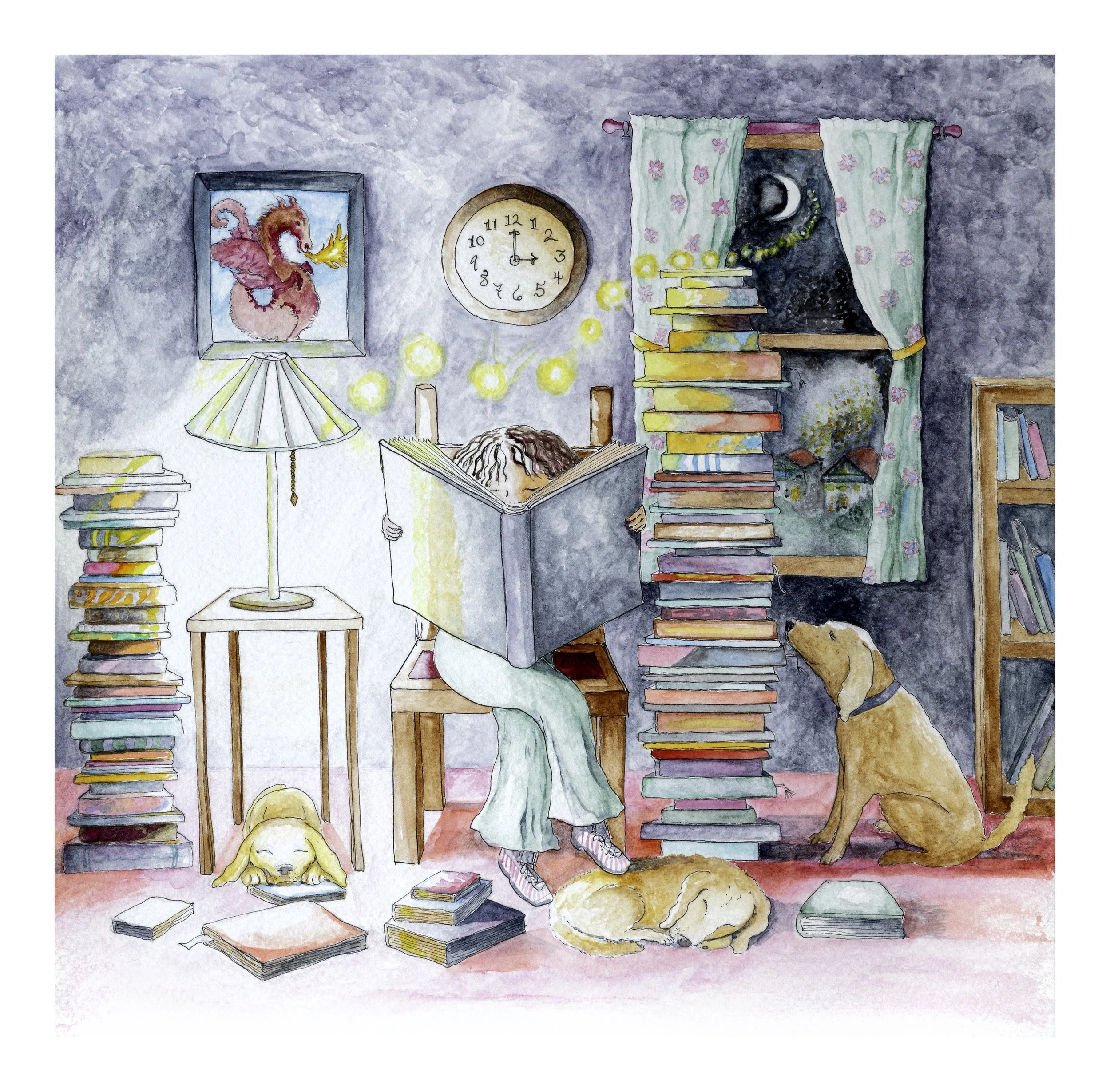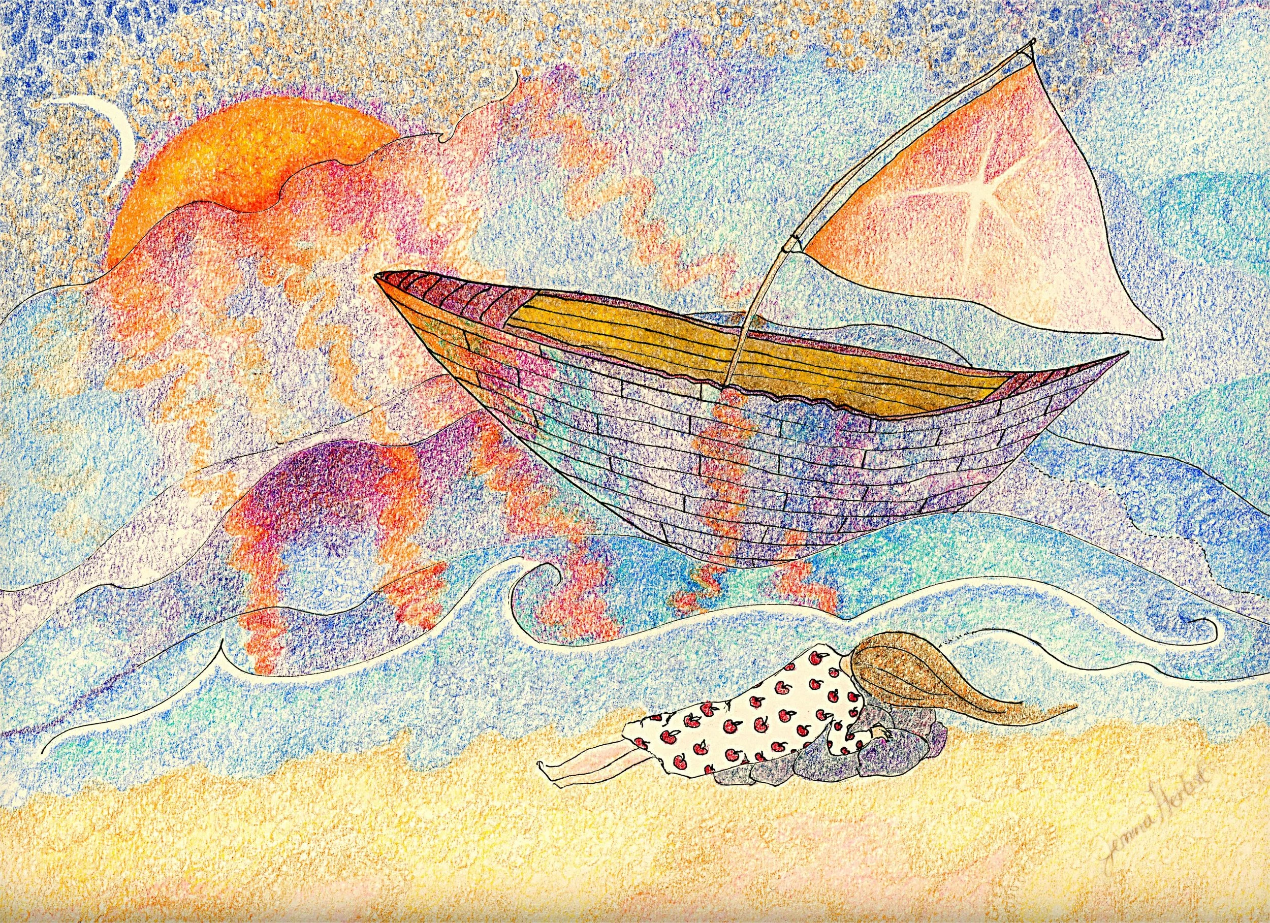 Jenna Herbst discovered in 2020 that she enjoyed drawing with colored pencils, moving slowly over the paper and taking a month or so for each drawing. Then, curious about paint, she started using watercolor and ink to make illustration type work. From there, she wanted brighter, thicker colors, and moved to acrylics, which is what she uses now. Mostly on canvas and sometimes on wood, she creates images from her imagination of how light and joy erupt through our lives and experiences, and also how the transformative element of the heart allows love to come through even the darkest of experience. Her pieces are illustrative, sometimes containing elements of magic. Jenna’s other profession of counseling and teaching informs her work, as she is deeply interested in healing and awakening. She is currently working on writing and illustrating a book.